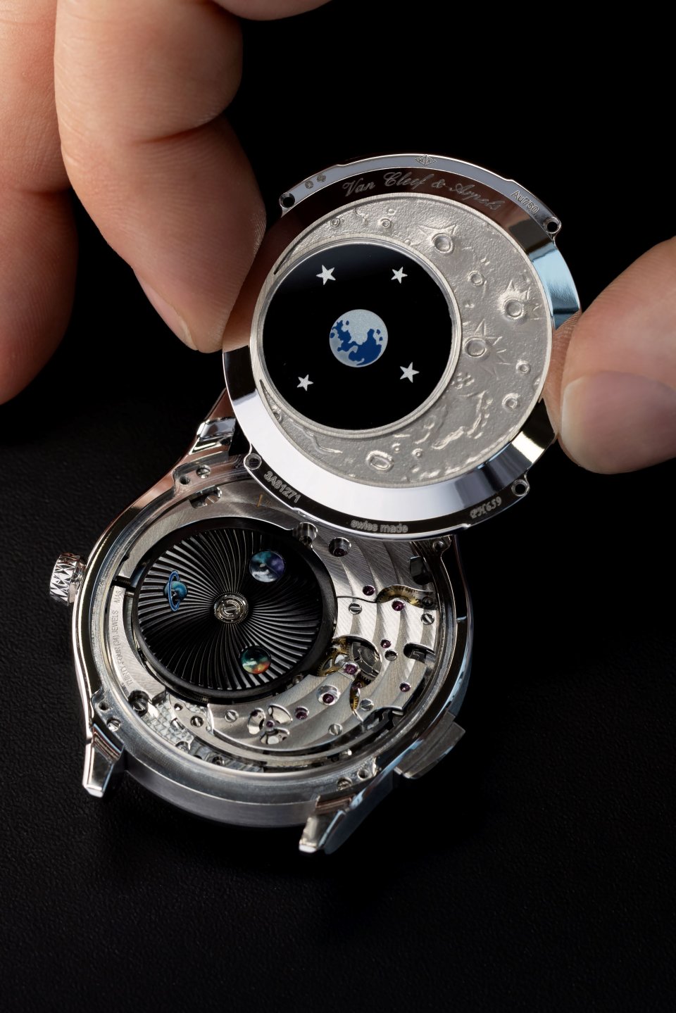 またオートマタ機構により、昼間でも現時点の月相を確認することが可能です。この天文学的ムーブメントはすべて、ジュネーブにあるヴァン クリーフ&アーペルの時計制作工房の職人や専門家によって設計され、完成までに4年もの歳月を要しました。