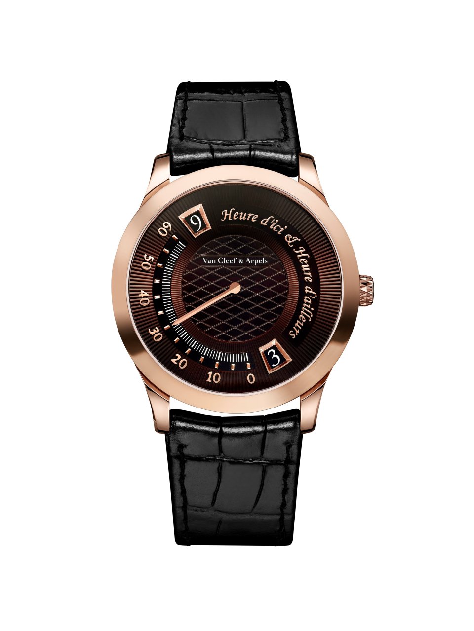 そのブラウンのニュアンスは、光の当たり具合によって温かみのあるアクセントにも冷たいアクセントにも変化します。文字盤には、ヴァン クリーフ&アーペルのひし形のホールマークを想起させるピケモチーフから放射状に広がる、美しいギヨシェ彫刻が施されています。